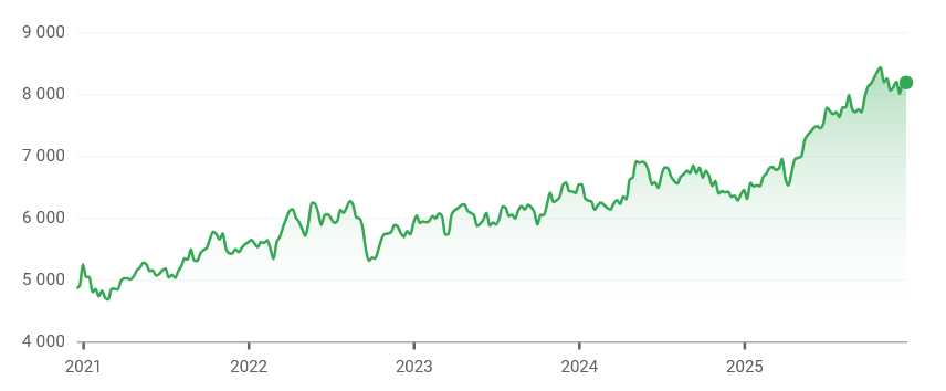 Índice bolsista português, o PSI, ao longo dos últimos 5 anos.
