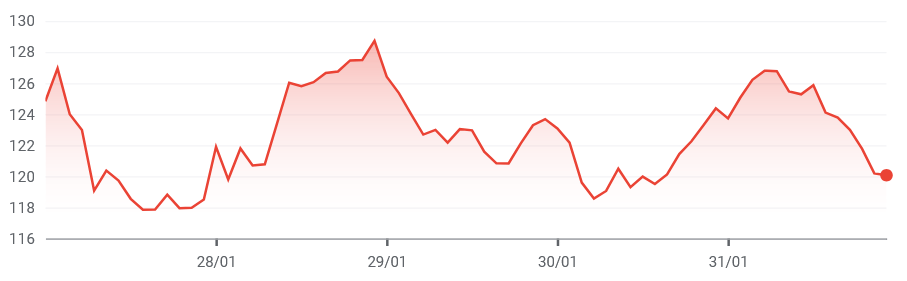 Ações da Nvidia ao longo da última semana, em dólares. Podia ser o percurso do Pico Ruivo ao Pico do Areeiro, mas é a irracionalidade dos mercados financeiros ilustrada.